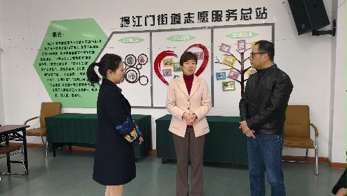 1月17日,区委常委、宣传部长梁春燕调研中央门街道社区综合服务中心、宝塔桥街道恒盛嘉园家训馆和挹江门街道志愿服务总站,对街道、社区社会主义核心价值观宣传、道德讲堂、一居一特和志愿服务等工作提出了具体要求。(宣传部、中央门街道、挹江门街道、宝塔桥街道)